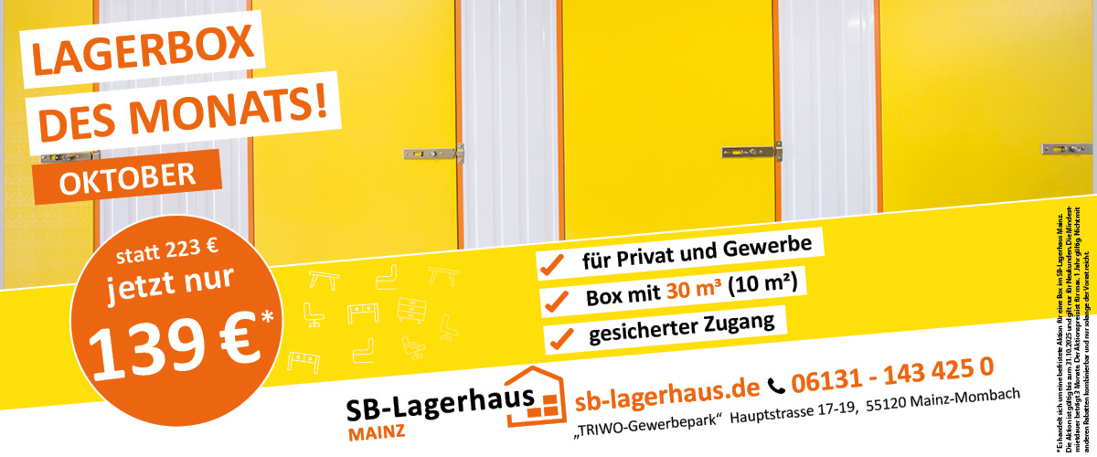 - Lagerung von Waren - Für Gewerbekunden, die kurz- oder langfristig Waren außerhalb ihres Geschäftes/Betriebes lagern möchten, wie z. B.: Material von Handwerksbetrieben, Saisonware, Musterlager, Messestände, Prospekte etc.